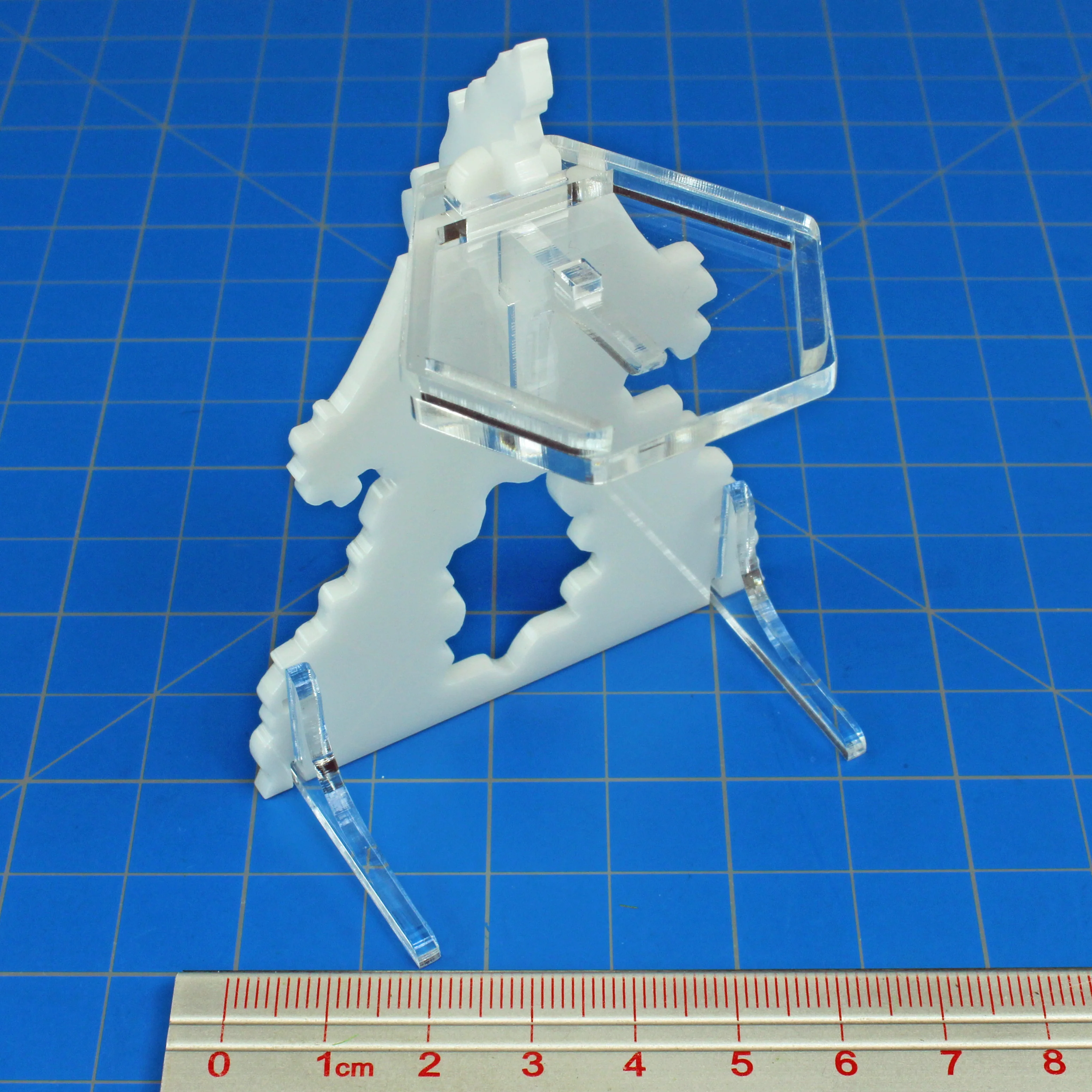 Jump Jet Stands raise hex-based models well above the table for unmistakable aerial states. The cloud riser and rear brace imply thrust, while the platform’s base cutout keeps the model locked in. Sized for 32mm (1.25″) hex bases.