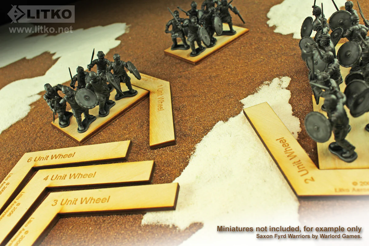 Turn and wheel units cleanly in Armati 2nd Edition with a dedicated set of wheel gauges. Keep the most common turn distances at hand so you can check facing changes without a tape measure.