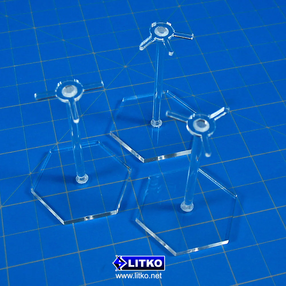 Mount multiple micro aircraft on a single stand with these 3-prong squadron peg toppers. Each topper clips onto LITKO standard 1/8 inch (3mm) flight pegs and provides three mounting points so you can arrange micro planes and spacecraft in tight formations on the tabletop.