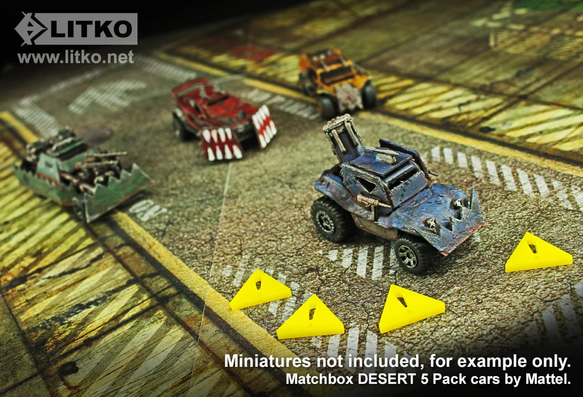 Call out warnings and special conditions with high-visibility triangular markers. This set features Yellow tokens made from laser-cut acrylic for durable table use and clean, readable icons.