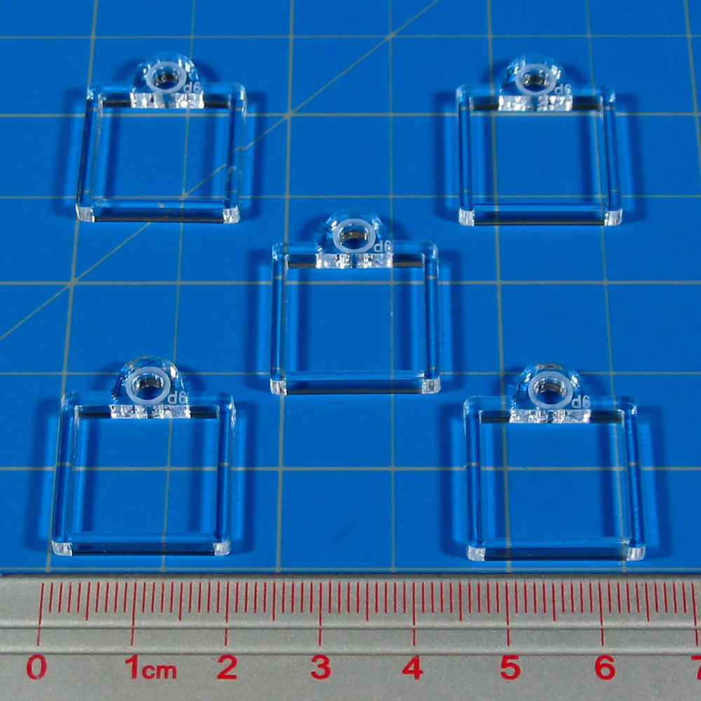 Upgrade your flight stands with these LITKO Polyhedral Dice Flight Stand Trays. Precision laser-cut from durable 3mm clear acrylic, these trays hold a single polyhedral die (d4, d6, d8, d10, d12, or d20) and sit at the base of standard LITKO 3mm flight pegs. This lets you track fuel, speed, elevation, or any other measurable status on the stand using a standard polyhedral die. Each option is sold in packs of five.