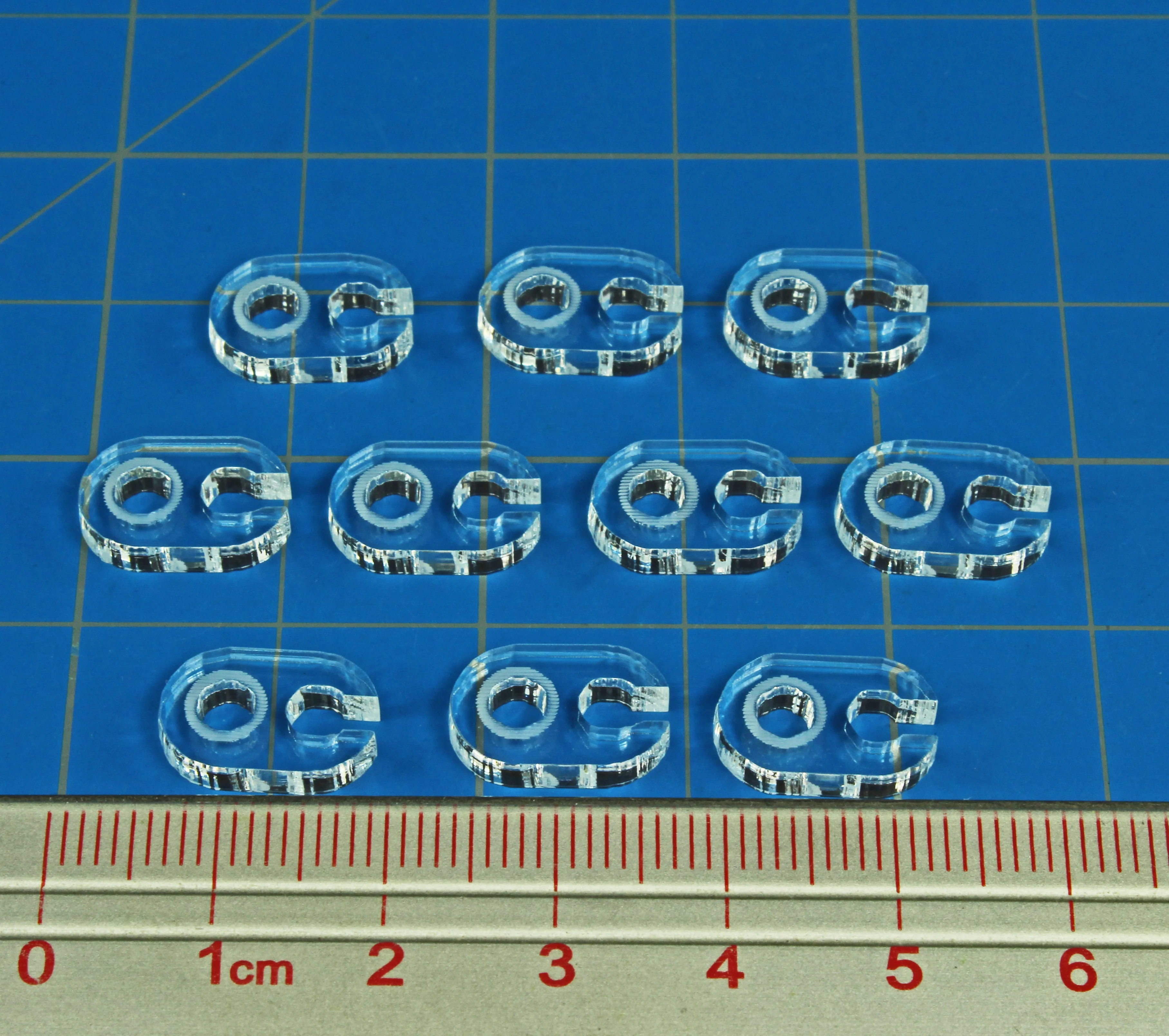 Upgrade your LITKO flight stands with laser-cut acrylic Space Fighter Peg Toppers compatible with Star Wars: X-Wing. Each topper slides over a standard 1/8-inch LITKO flight peg and provides a snug mounting point for your space fighter miniatures, with a compact 14mm x 9mm profile and two circular cutouts. Flight Bases and pegs sold separately.Â