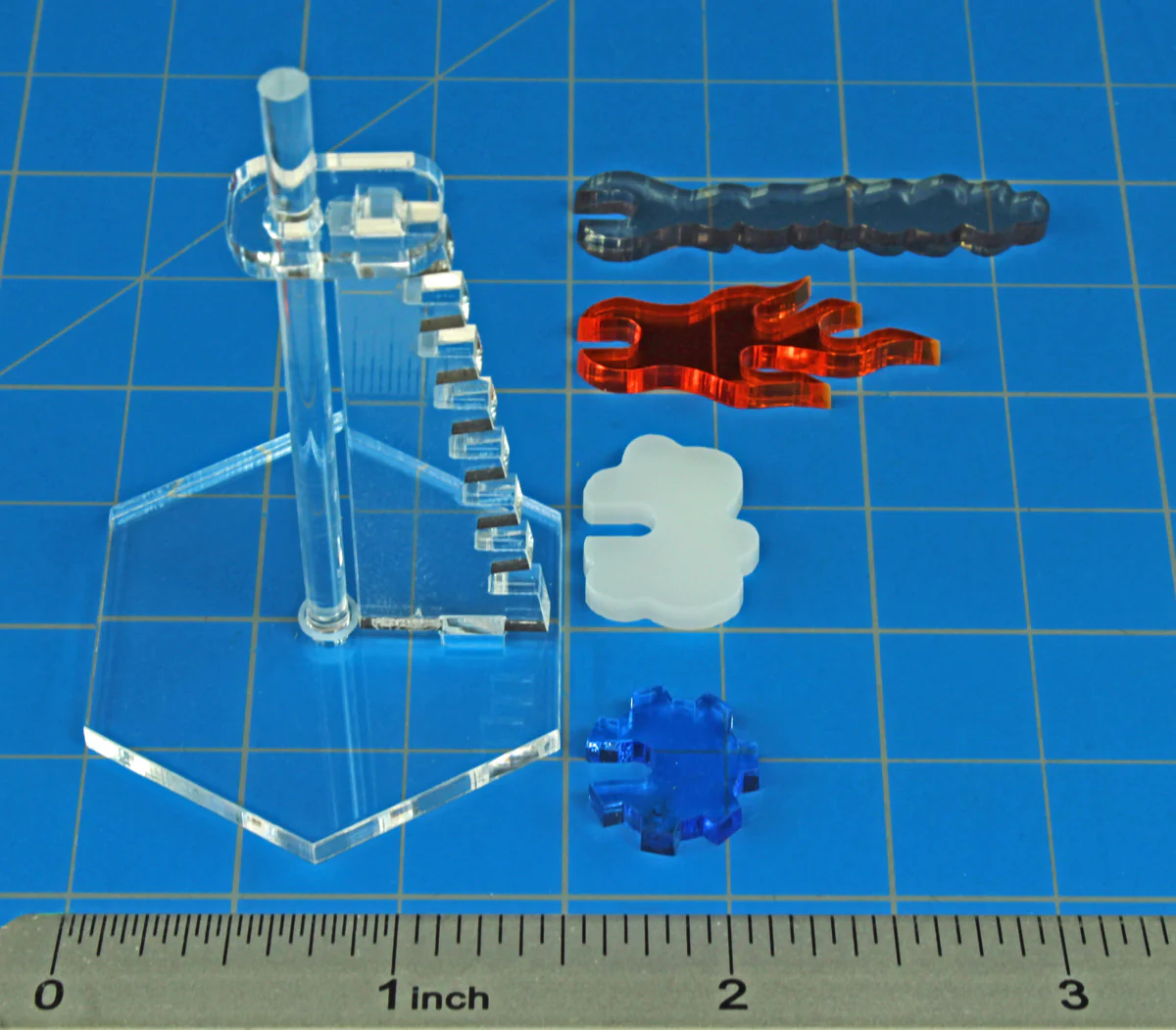 Add clear vertical movement and status tracking to your aircraft and other flying models with this deluxe single-riser elevation flight stand. Precision laser-cut acrylic parts stack into a compact 1.5-inch hex stand that is compatible with standard LITKO flight pegs and ideal for tabletop miniatures games.