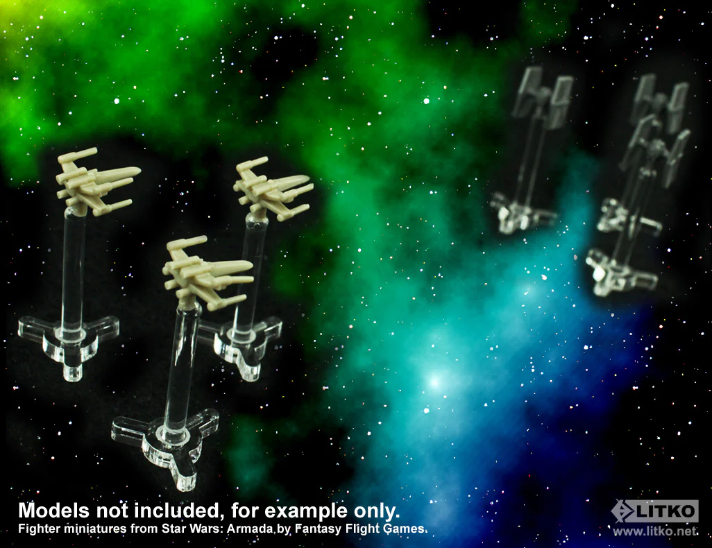 Use these mini flight stands to lift small board game pieces and vehicles off the tabletop. The compact triangular base design lets you place several figures in a tight area, and each stand includes a 1/8 inch (3mm) diameter 1-inch long peg compatible with LITKO standard flight stand products.