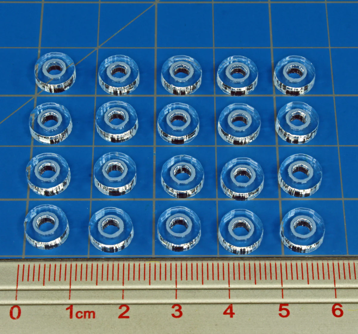 Upgrade your acrylic flight stands with these standard flight stand peg toppers. Compatible with LITKO Standard 1/8-inch (3mm) flight pegs, they add a larger mounting surface at the top of the peg so you can mount aircraft, rockets, and other models securely.