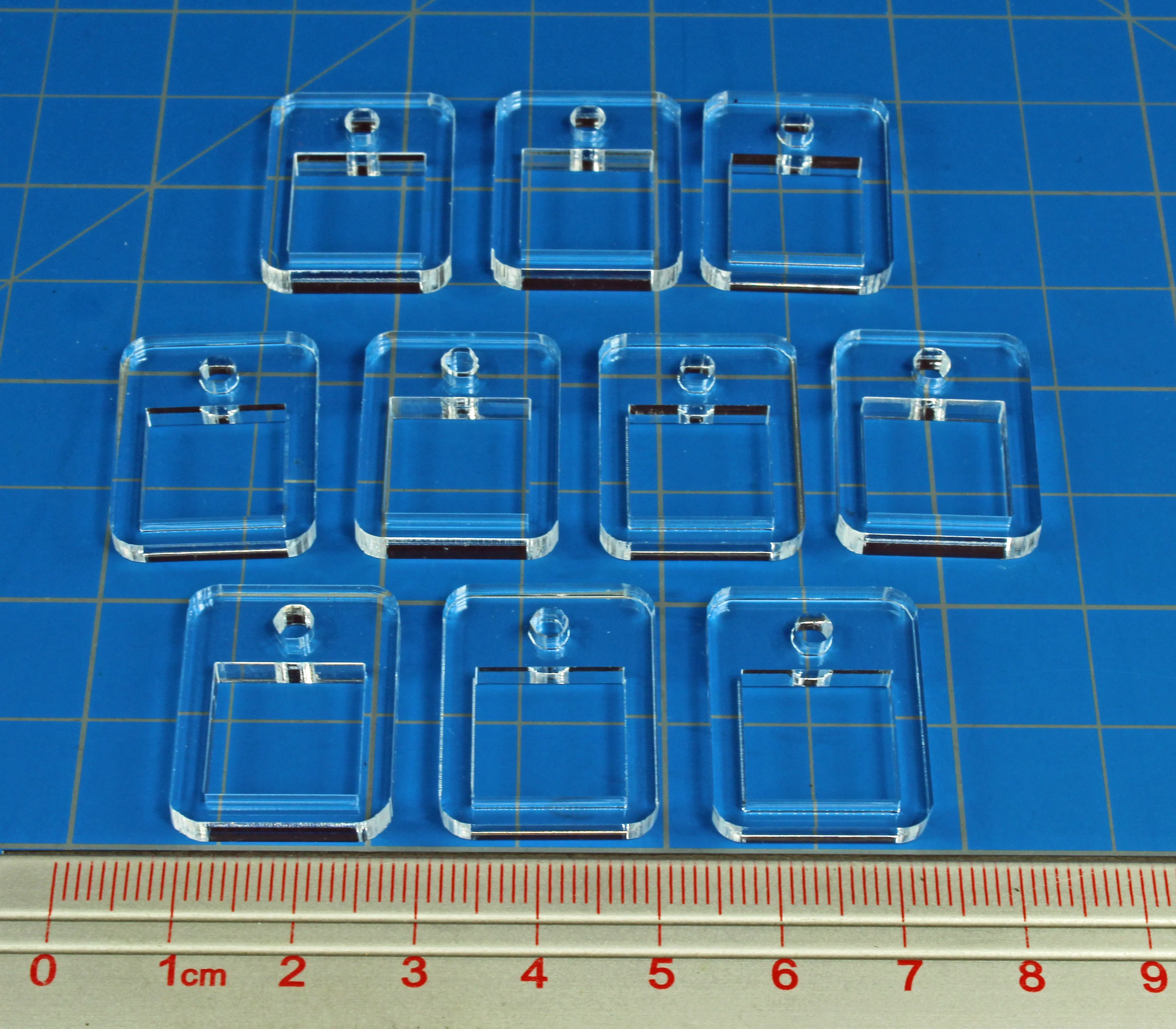 Upgrade your flight stands with the LITKO Flight Stand Dice Tray for 12mm dice. Laser-cut from durable 3mm clear acrylic, each tray holds a 12mm D6 and sits at the base of standard LITKO 3mm flight pegs. This gives you a simple way to track fuel, speed, altitude, or other stats using dice on the stand.