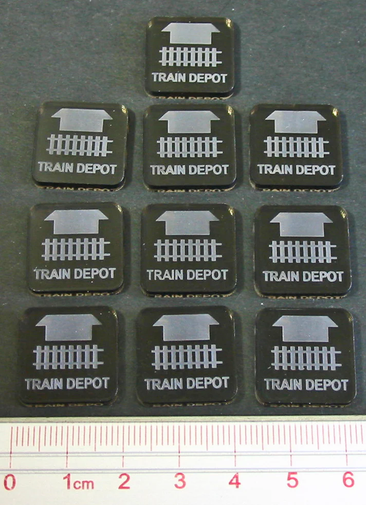 - (10) 19mm Transparent Bronze Train Depot tokens