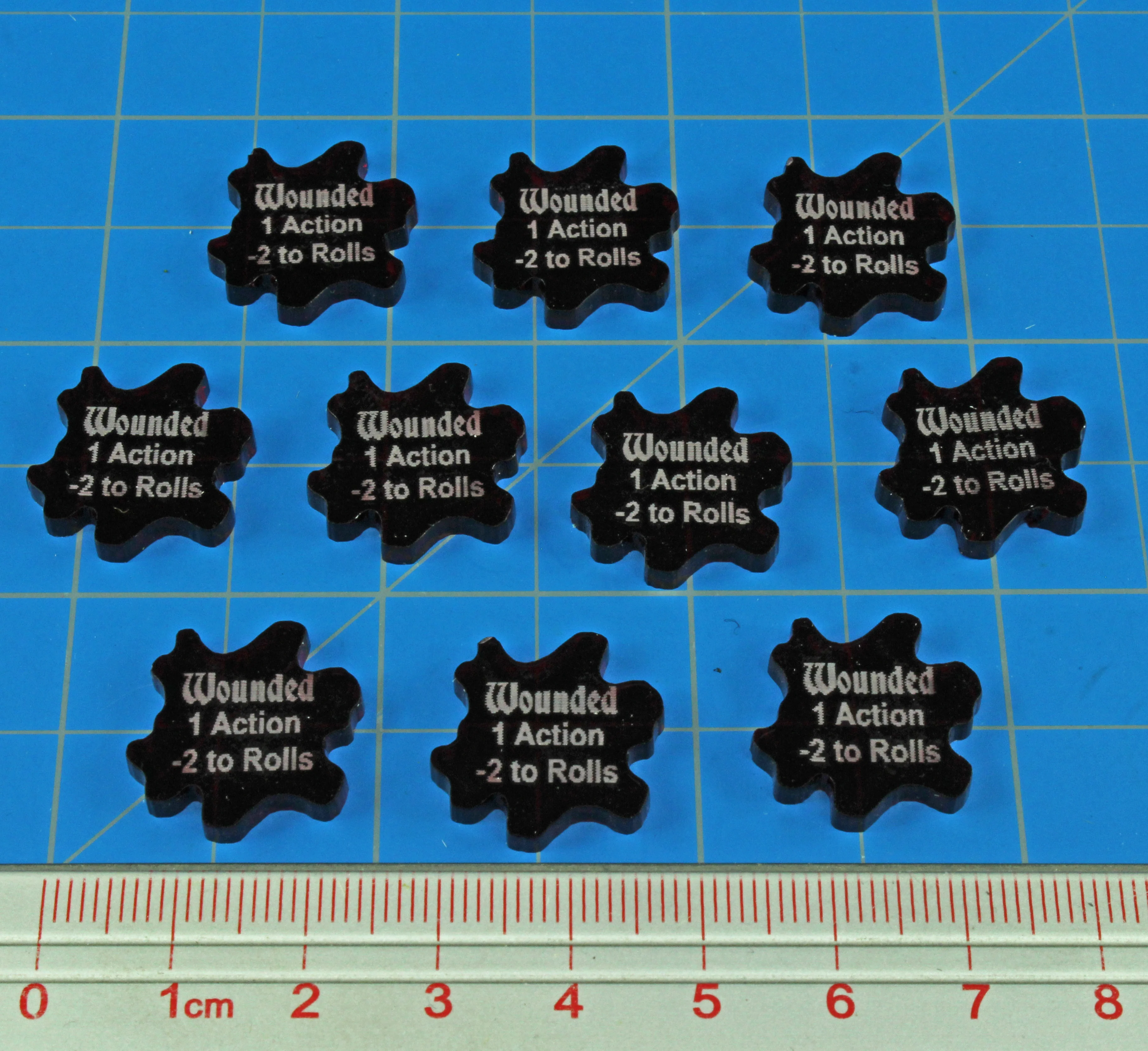 - (10) 19mm Translucent Red Wound tokens