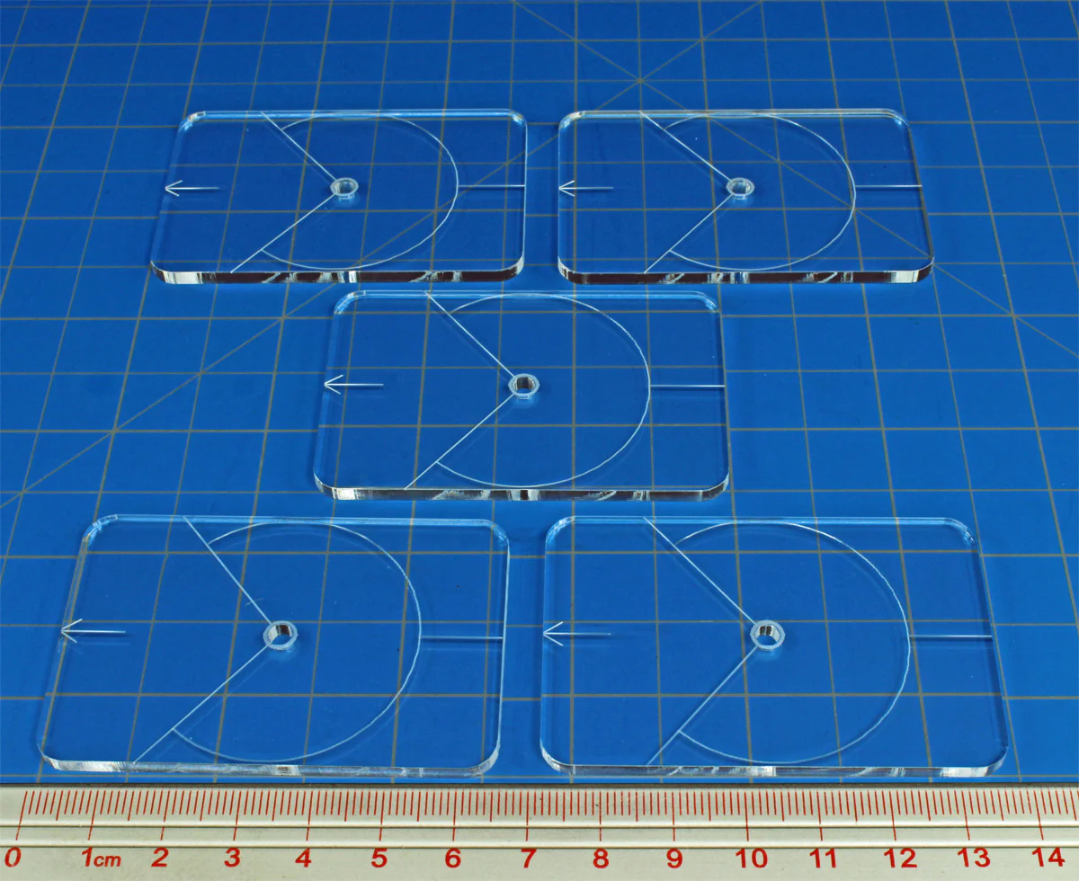 - (5) clear 44x67mm Flight Bases with Rear Arc