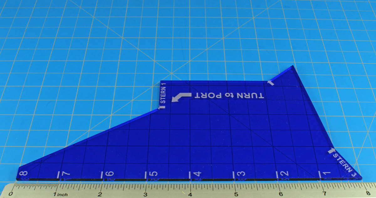 - Three marked turn angles for common naval games.